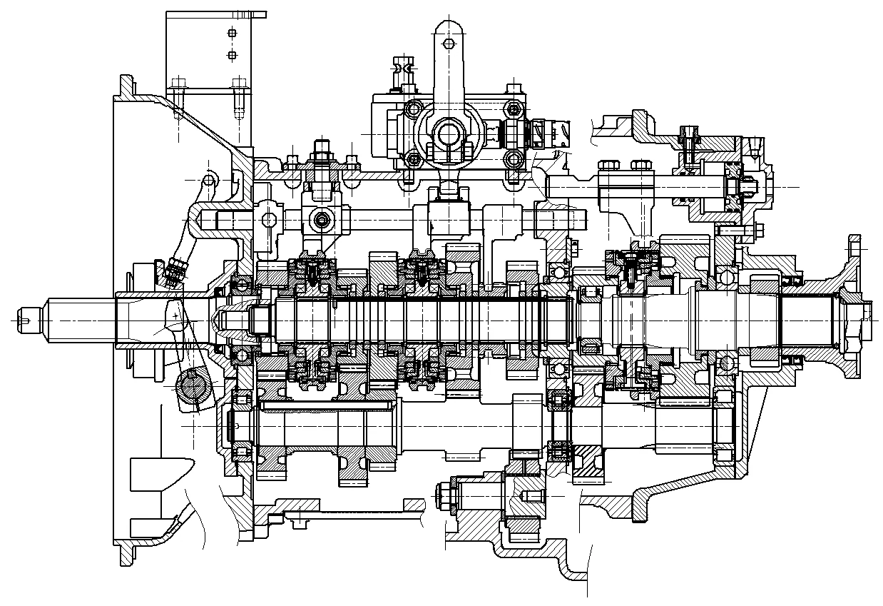 The main and auxiliary boxes are double intermediate shaft structures, 4X2 combination, with a total of 8 forward gears and 2 reverse gears.